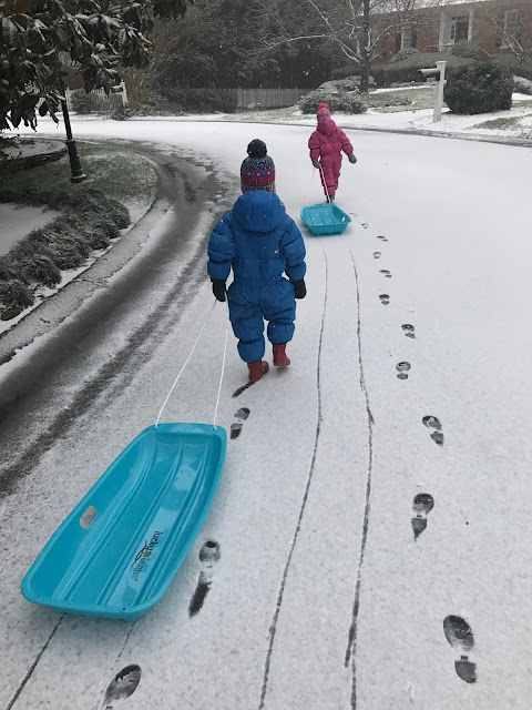 The weather man kept saying we were going to get 8 inches or more, but we got closer to 1 inch. Either way the kids made the most of it! One thing we were not able to do with 1 inch of snow was build a snowman so hopefully this is not the only snow we see this winter!